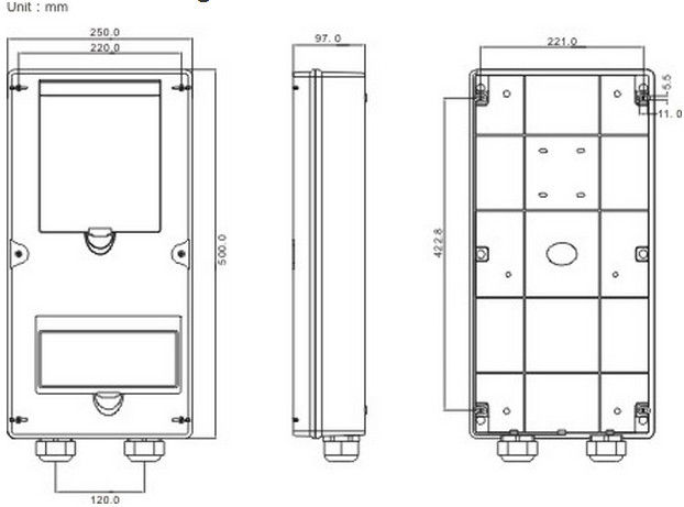 Η σειρά κιβωτίων μετρητών σειράς CAM368-K1 σχεδιάζεται συγκεκριμένα για τους σκληρούς αφρικανικούς όρους και προσαρμόζει μια λύση για κάθε θέση. Το γενναιόδωρο δωμάτιο καλωδίωσης και καλά-τοποθετημένα knockouts καλωδίων επιτρέπουν έναν γρήγορο κατάλληλος-μακριά, κάθε φορά. Τα κιβώτια μετρητών έρχονται με μια ειδικά-σχεδιασμένη αρθρωμένη πόρτα, η οποία μπορεί να αφαιρεθεί για τις μακροχρόνιες περιόδους της συντήρησης ή της ενδεχόμενης αντικατάστασης πορτών. Louvers εξαερισμού τους δίνουν μια IP54 εκτίμηση, που παρέχει περισσότερο από την επαρκή προστασία από τα μεγαλύτερα αντικείμενα και τους άμεσους ψεκασμούς νερού στα συνημμένα.